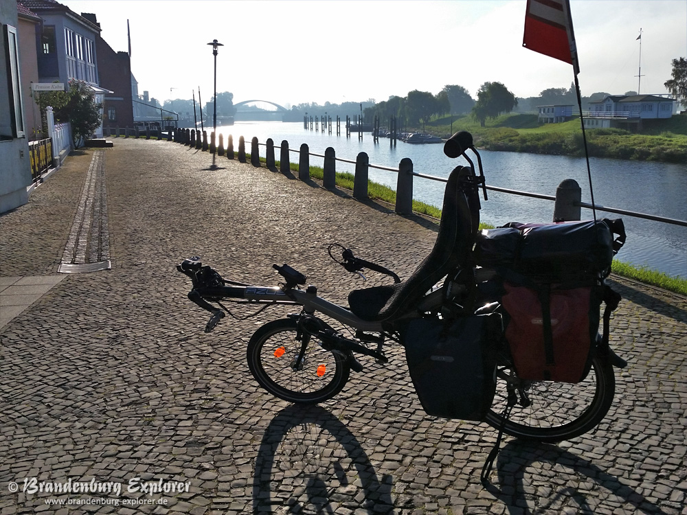 Erster Tag. Ich starte am Morgen gegen 8.00 Uhr am Bahnhof von Wittenberge und überquere zunächst die Elbe, der ich auf dem Elberadweg in Richtung Norden folge. Nach rund 20 Kilometern Fahrt erreiche ich die Stadt Schnackenburg und befinde mich nun bereits in Niedersachsen. Die idyllisch und direkt am Fluss liegende „kleinste Stadt Deutschlands“ befand sich zu Zeiten der deutsch-deutschen Teilung im östlichsten Zipfel der BRD, der – wie das gesamte Wendland – weit in das Gebiet der DDR hineinragte.